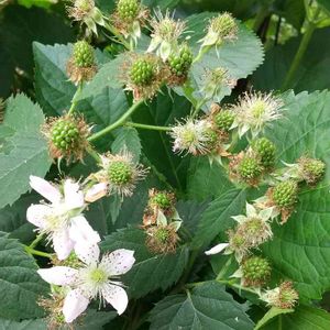 おはようございます ブラックベリー で合ってますか? ご近所さんのフェンスに伝ってなっていました。 食べたら美味しいのかなぁ? 大雨の被害がこれ以上大きくなりませんように。
