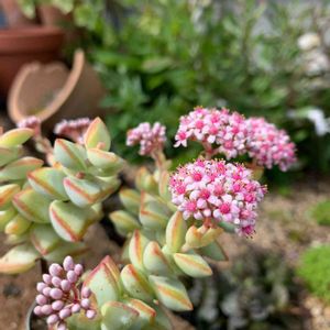 おはようございます😃 🏷金曜日の蕾たち に参加させてくだい 今年も 多肉に花芽が 上 銘月 左 朧月 右 クラッスラ ルペストリス ベランダで 2月1日