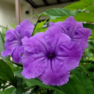 水無月の青い花〜美しく青きドヨウ💙🩵 ルエリア パープルシャワーです💜😍 これも前の家から連れて来たお花で、去年は根付いたかどうか心配なぼど弱々しい感じでしたが、今年は元気良く茂っています♪三枚目では、タイタンビカスの勢いよく伸びた茎葉と並んで負けない程元気良く咲いています😍💜💙