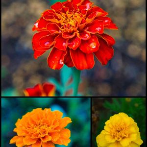 こぼれ種からの 『マリーゴールド』 同じ花のはずですが、数種の色柄が咲いています💛 日差しの中で今撮ったので、少々元気がないようです😅