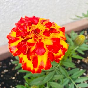 こぼれ種から育ったマリーゴールドさん✨ 今年はちゃんと種蒔きが出来なかったけれど、この一つがいつのまにか育ってくれて嬉しいです😃💕💕