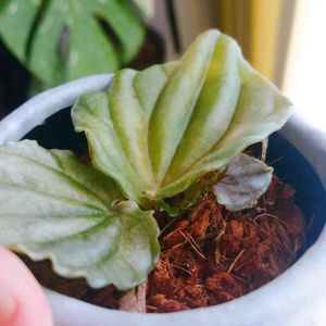 今日のお花、ペペロミア 昨年秋に徒長→根腐れしてしまい、なんとか復活をかけて葉挿しや水挿しするも全滅😢この子は二代目です。 うちにある他のペペロミアより数段気難しい気がします。今回は無事育って欲しい💦