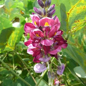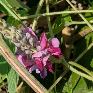葛の花 ①〜④畑の隣りの塀から蔦が垂れ下がっている よく見ると花が咲いていた 調べたら葛の花😊 葛根湯や葛粉の原料💊😋 残念ながら根っこは隣の敷地内😅 ⑤ススキの様でちょっと違う🤔 こちらも調べたらセイバンモロコシだそうです 畑仕事の休憩中に発見💡