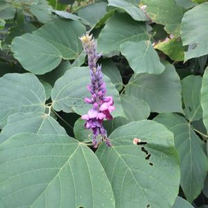 線路に沿って続くフェンスに絡まって生えているクズ。 遠目には見えなかったのですが、近づくと葉っぱに隠れて花が咲いていました‼️ 足下が草ぼうぼうなので🐍さんにビクビクしながら、我慢して撮りました😅💦💦