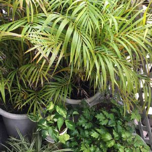 ワッサワサ、モッサモサ…のコーナー🌿 鉢植えは植えっぱなしで水だけなのに、ちゃんと緑をありがとう‼︎ アレカヤシは20年🌴地植えならもっと大きく伸び伸び育ってるだろうに…🙇♀️