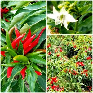 唐辛子の花と実🌶 まだ唐辛子は花が終わって、緑色の実です❗️ 今に赤くなると、辛くなるぞうー❣️❤️ ちょっとお客様もいらっしゃいました‼️