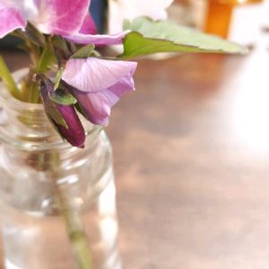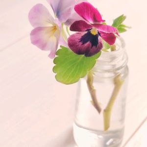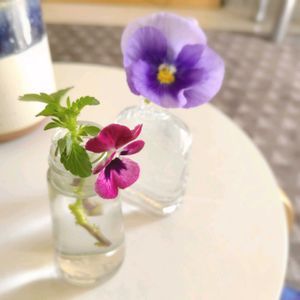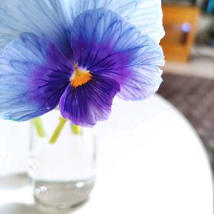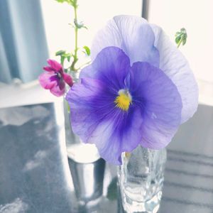 部屋に花が欲しくて、庭のパンジーを少し切ってきました。 小さな蕾が互いに寄り添うように…ちょっとほころんできています。