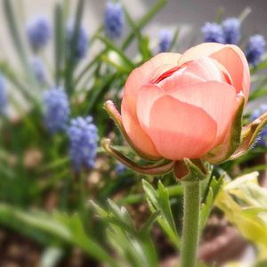少し前の写真、まだムスカリが咲いていた頃。わが家のムスカリ達は終了してしまいましたが、ラナンキュラスはまだ頑張ってくれてます ♪( ´∀ ` *)