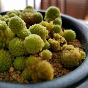 モナンテス ポリフィラさん 購入から2週間 手前と右側のコロコロした子達、やや色がくすんでしまいました。 蒸れるのが怖くて 買ってからお水あげてません。 あげるべきかなぁ?😅
