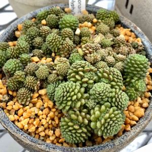 ★ポリフィラ どーも♪ あ~もー確定申告の手続きとか嫌過ぎる! あっち行ったりこっち行ったり、しかも混んでるし、 もうちょっと簡単にして欲しい😤 本日はモナンテス ポリフィラ♪ マツカサちっくな透明感のある葉っぱが特徴で、 カナリア諸島原産。高地の日陰の崖や、 岩場などに自生しているようです。 湿気が大好きなので、 涼しい時期は水切らせられません💦 高温多湿な日本の蒸し暑い夏には滅法弱く、 確実に溶かす自身アリです😆笑 日照はあんまり必要なくても育つ感じですが、 しっかり陽に当ててあげると少しばかり紅葉します✨ ポリフィラの亜種として、 葉っぱにザラメがついたようなアミドロスがあります。 持ってないですけど…😅 -∴-∵-∴-∵-∴-∵-∴-∵-∴-∵-∴- Monanthes polyphylla モナンテス ポリフィラ 和名 不明(情報募集中♪) 別名 不明(情報募集中♪) シノニム Monanthes polyphylla ssp.polyphylla