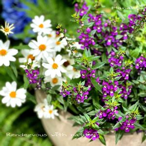 🍀 アンゲロニア セレニータパープル🍀 🍀フランスギク(デイジー)🍀 ハナコ好みの寄せ植えに出会いました💜 シンプルで素敵ですね😊
