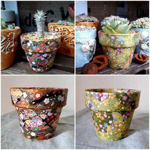 リメ鉢 千代紙をちぎり デコパージュ液で 貼り付けて 出来上がり〜♬.*゚ これは楽しい (((o(*゚▽゚*)o))) 皆様もお試しあれ💕😀