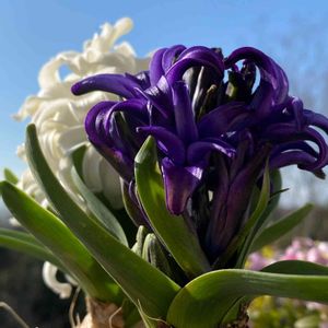 ❀*・ 久しぶりに3色迎えたヒヤシンス 白い花が先に咲きました🤍💫 今朝の青空コラボ〜♪٩(✿′ᗜ‵✿)۶♪ よか一日に♥( ◍´꒳`◍ )ヨキヨキ🌸🍀