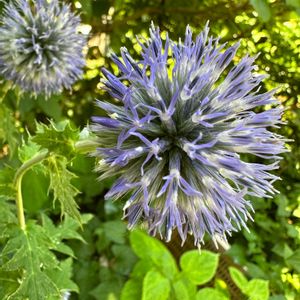 ルリタマアザミ🟣エキノプス 昨年の春に小さな苗を購入しました。初夏に咲くはずが全然咲かなくて、真夏も真冬も枯れないでずっと葉っぱ。 もしかして私は草を育てているのでは?と心配になり、バイヤーさんに聞くと、今年(購入した年)は咲かないよ、来年まで待って。草って🤣と笑われました😂 そして今年やっと咲きました🟣 咲いたら咲いたでなんか違う。思っていたルリタマアザミじゃなかった😅 1年以上かけて間違いに気づきました🤣🤣🤣
