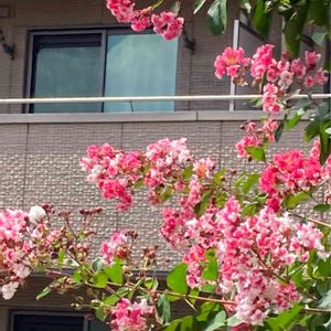 おはよう👋😆ございます。 🏷️毎月19日はピンクの日 参加させて下さい。 猛暑日気温最高日37℃ 体温より高い😨昨日 整形外科へ向かう街路樹のサルスベリの花が満開でした❣️