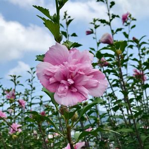 今日のお花✿❀✿ フヨウ(芙蓉)💟② 八重咲きのピンク色 可愛い〜(*˘︶˘*).。*♡🩷 昨年9月3日 🏷秘密の花園♡💠 🏷乙女ピンク 🏷ピンクワールドへようこそ 🏷花咲く乙女たち♡ 🏷らんまん応援♪