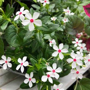 ニチニチソウ 夏花火(ホワイトレッドアイ) 小さい白花に中心の赤が可愛らしい😍