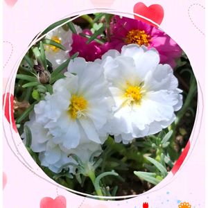 今日のお花 マツバボタン ①②DAISO八重松葉ボタン ③苗購入した リトルマーメイド 🏷️白い貴婦人✨ 🏷️種から育てる♡🏷️かわいい発芽♡ 🏷️コラージュして遊ぼ♡🏷️コラージュ仲間達 参加します