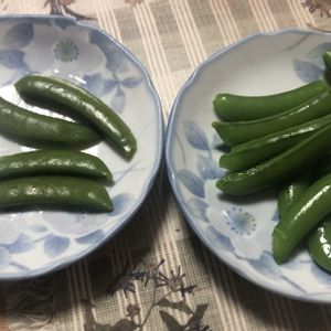 こんばんは^ ^。 今日は一日中雨模様でした☔️ 夕食の時にスナップエンドウの食べ比べをして見ました。 片方は固定種でもう片方はF1種、ホームセンターで買ってきた種です。スナップエンドウめっちゃ大好きなのでやっと自分で作れて、収穫してすぐ食べれる嬉しさ〜\(^^)/ ありがたです😊 そしてそして、自分でも驚きなのですが、湯がいた後の食べ比べで味がこんなに違うのを改めて実感しました。見た目も違う〜