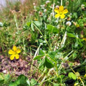 エゾタチカタバミ。 径1mmほどの細い茎が直立し、30cmぐらいにはなります。🤗