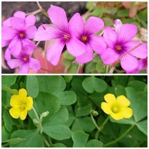 左。エゾタチカタバミ 細い茎が30cm前後立ち上がります。🙄 右。ウスアカカタバミ 茎や葉の一部が赤くなっています。 全体が赤紫色のものはアカカタバミです。🤔