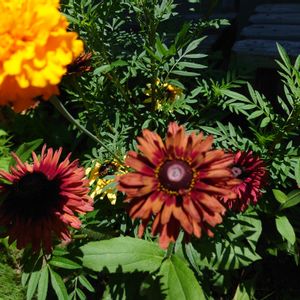 【ルドベキア】 『キャラメルミックス』 仲間入りしたルドベキアさんと こぼれ種で出てきた 『アゲラタム』ピンク 『観賞用唐辛子』紫の葉 と、寄せ植えしてみました😊 今後どうなるかなぁ〜😌 『キャラメルミックス』 アンティーク色で可愛いなぁ〜💕 いつの間にか8月‼️ あ、1日なので… オルトラン&追肥 しないと😅暑いな…