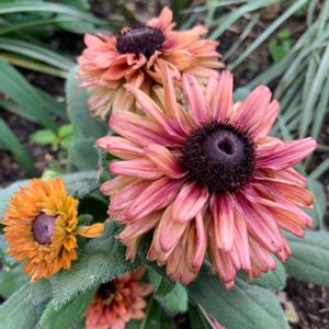 2021年11月に種蒔き 2022年夏開花し、今年も咲き始めました。 一株で咲き進みの色が茶色からローズピンクに移り変わります。 左手奥はエキナセア。 ルドベキア キャラメルミックス