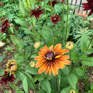 ルドベキア キャラメルミックス🌱 チェリーブランデー🌱 去年の種まきっ子 花壇で冬越しして、さらに大株に育って次々咲いています。 元気な花だなぁ!