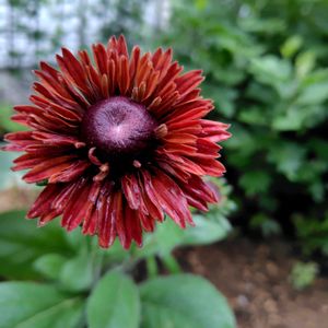 春蒔き種からのルドベキア 大きい目のぬらっとした感じがちょっと恐い…。 犬の鼻と思って可愛いと思い込むことにする。 4株とも同じ感じのシックな色。 バリエーションを期待したのだけど。