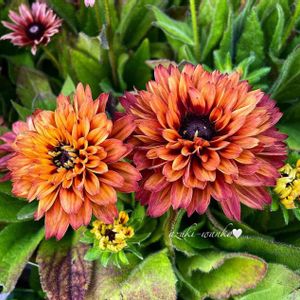 ルドベキア・キャラメルミックス(学名: Rudbeckia x hirta caramel 英名: coneflower “caramel mix”)🌺🌿🌼 シェードカラーが美しいルドベキアです。 キャラメルミックスの花は、花弁の多い八重で、花はコッパー、ブロンズ、ダークピンクなど色幅があり、花芯の黒との対比が美しい品種です。 キャラメルミックスは、暑さに強く、初夏から秋まで花を咲かせます。 丈夫で育てやすく、側枝を次々と出し、多数の花を長期間咲かせます。環境が合えば冬越しし、翌年もまた花を咲かせることがあります。 素敵な色合いのルドベキアの花をお楽しみください。 🌺🌿🌼