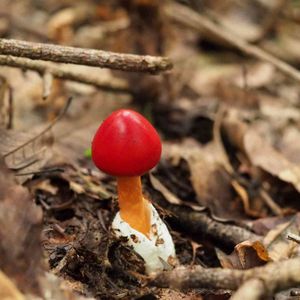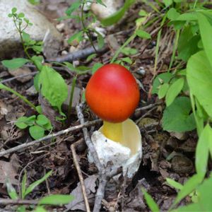 「タマゴタケ」 卵茸 食用キノコ。 見とれるような赤色。とてもおいしいそうです。 2020.9.28撮影