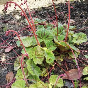 少し冷たい朝です。ランナーで増えるイワユキノシタです。三年前宿泊した旅館の公衆駐車場に、🌱葉っぱだけでブロックに挟まっていたように見えたので、引いたら簡単には取れてきました。😞💦と思い自宅に持ち帰り、梅もどきの木の下に植えました。ランナーで増えること一つがこんなになりました。余程居心地良いのか、我が初夏季節を満喫してます。