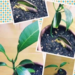 47日目 久しぶりの投稿です。 先っぽが枯れていたところを触ったらクシャっとなって破れました。そしたらフワッとマンゴーの匂いがしました! 種が茶色くなってきました。触るとグラグラして取れてしまいそうです。取れてしまっても大丈夫なのかな? もし分かる方いらっしゃいましたら教えてください😊