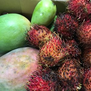 おはようございます この頃暑すぎて全く庭の剪定と薬散布が捗らない日々を送っております(*'ω'*) 実家から孫のためにと実母から毎年恒例のマンゴーが届きました。 今年はアーウィン種は冷凍をいただき生はキーツを送ってくれました。 これ1玉が800g近くあり凄く大きいんです 味はこちらの方が濃厚で甘みも強いのが特徴です。 ただ今追熟中なので家族みんなで匂いを嗅いでワクワクしてます(笑