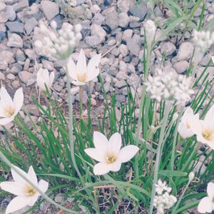 ①アリッサムが雪❄みたいできれい ②ゼフィランサスもこのアングルもかわいい ③④きれいな紫💜になったコムラサキ ⑤やっぱりうれしい自宅の秋明菊🥰