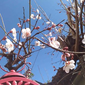 撮った📸のは、3月上旬です。 花の付き方はどーみても 桜🌸のような気がするのですが、 花びらがまん丸で。。。 桜の花びらって、先が割れてたりしますよねぇ❓ なんと言う桜?の種類なのやら🤔 【追記】その後、ベニバスモモらしいことが判明しました❗ この時期、サクラの開花と間違えられることが多いお花なんだそうです😅 とっても勉強になりました~😆💕✨