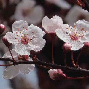 《ベニバナスモモ・プルヌスシスティナの花🌸inデンパーク》 ベニバスモモはその名のとおり葉が赤っぽく、カラーリーフを楽しむことができる樹である。庭木や生け花として利用される。ヨーロッパでは街路樹にされることが多いといい、「木々のリスト」にはベルギー、ブリュッセルの美しい街路樹の写真がある。関西にもこの樹の並木があり、大阪駅前第3ビルと第4ビルのあいだに植えられていると聞く。神戸市にも並木があり、JR元町駅前の道路沿い(神戸市中央区元町通3)には50本ほど植えられているという。