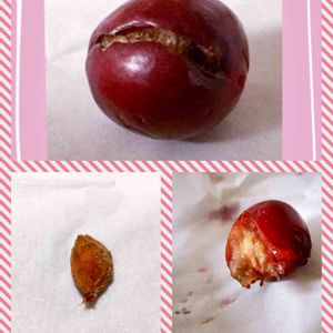 こちら紅葉スモモの実です。アメリカンチェリーのような色、形。甘いのかと思いきや、かなり酸っぱいです😅