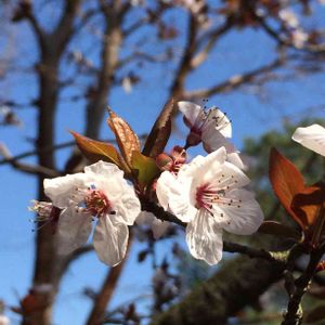 こちらフローランテ宮崎では桜はまだ咲いていませんが、桜に間違えられる事の多いベニバスモモは咲いてます! 青空に映える赤い葉っぱにご注目(-_^)
