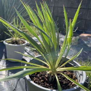 ユッカ フィラメントーサ 元々、親株周辺から出た子株を株分けしました。芋状の根っこごとナイフで切り離したので心配でしたが今のところ順調😆
