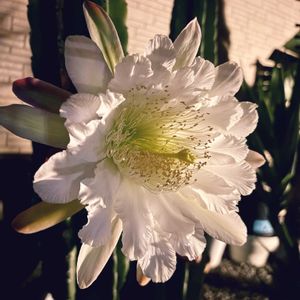 A.M.1:00 今日も鬼面角が開花中 上部が腐ったので、春に胴切りをしたサボテンです。 お花は「元気に生きてるよ」のサイン。