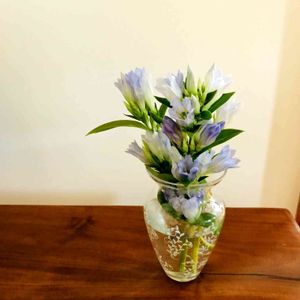 今日のお花、りんどう 有隣堂の店先のお花屋さんは植物を買うと「おまけ」をくれます😆💕 前回いただいたのが、りんどうでした 青が濃くて綺麗…