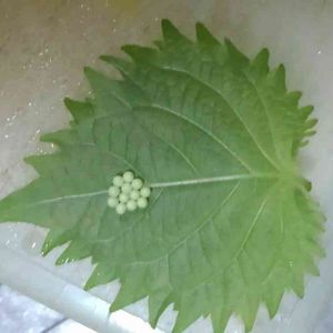 いろいろな料理の色どりに活躍してくれる青じそ。肥料も消毒もなし、水やりだけ。 それが、😨😰😱 葉の裏に夜盗虫の卵発見‼️ そう言えば、かじられた葉っぱが時々見つかっていたけど、犯人はあんただったのね…💦