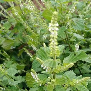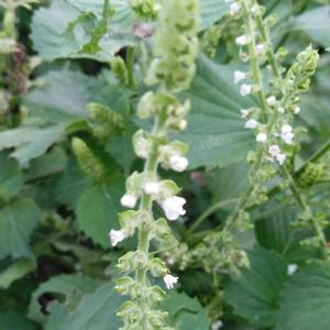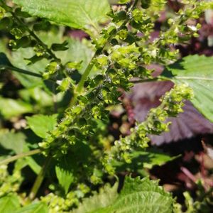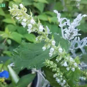 夏の料理をもり立ててくれた青じそ。小さな白い花をたくさんつけています。 まだ芽のままのものを福神漬けに使う予定です🍀