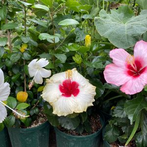 今日は 3輪も咲いていたあげく✨一輪はピンクの線が入り めっちゃ可愛い🍀 ハイビスカス/コーラルホワイト/みとよ園芸(^^)