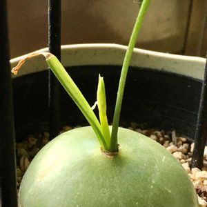 ボウィエア属 蒼角殿 別名 ボウェイア ボルビリス たまねぎみたいな謎の植物が売り場にあるのを見つけ、枯れかけがなんと75%off! 「世界的ですもんね。乗るしかない、このビッグウェーブに」 と思い救出&興味で連れ帰りました。 カラカラやったんでジャブジャブ水をやり、なんとか復活したっぽい? 大きくなったらほんまにたまねぎっぽくなるようで😎
