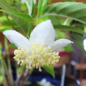 梅花甘茶 咲きました🌼 肉厚な白い花弁 ふさっと丸く開く黄色い蕊 ともに透明感があって綺麗です✨✨ 葉はヤマアジサイより大きめで野性味があります 園芸店でもあまり見掛けません 毎年、参拝にうかがう山寺で販売されています 山アジサイが静かに咲いてる 素敵な山寺 今月の下旬にうかがう予定🎶