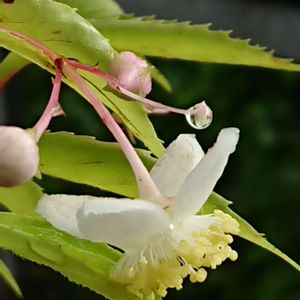 梅花甘茶 いつまで焦らすのと思ってた蕾が 雨上がりの庭で開花していました。小さな花です🌸