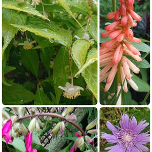 最近の私のお気に入り❗️😊 左は🏷️を無くしてしまい、名前が分からないけど、色あいがとてもステキで、👀をひきます。 断崖の女王はこれからどうなるのか…。😂ベルベットの葉色がステキ❗️💖 小さい鉢植えの梅花甘茶は、春に咲いたのに、違う枝にまた咲いてくれました😱💕 お茶の花によく似た花です🎵 甘茶に出来るのかな⁉️😂 左はフミリスと教えていただきました😂 ありがとうございます❗️
