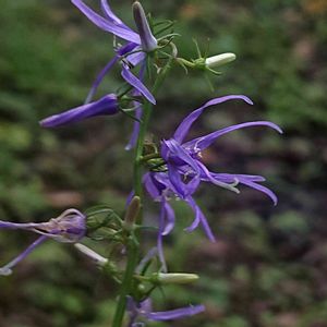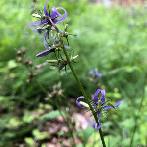 お山、私お初の花 山行ってよかった〜😭今日を逃したら会えなかった花 🌱シデシャジン。 キキョウ科シデシャジン属多年草 50〜100センチ、花7月〜8月 人が管理して除草薬散布でなく、除草してくれている道路脇は光が届き、植物が守られています。